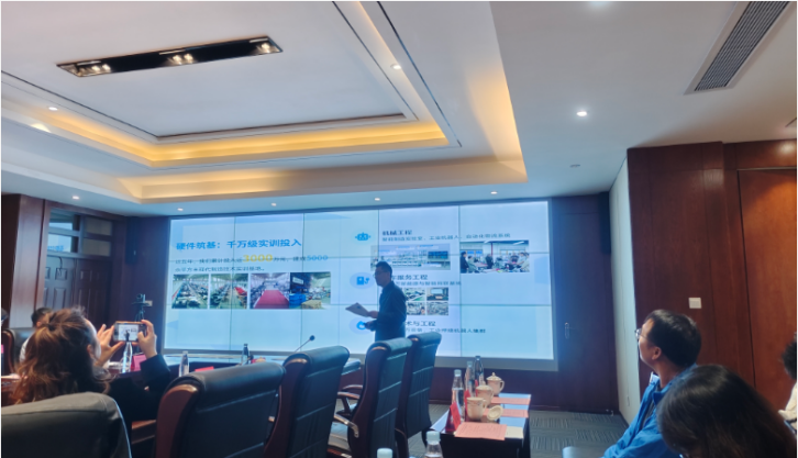在教学观摩环节,嘉宾们走进智能制造实训室,近距离观看学生绘制系统方框图、编写PLC程序、排查设备故障等实践操作。学员们以“产品交付”为导向进行项目汇报,从企业视角分析生产效率优化与设备安全保障需求,展现出扎实的技术能力与工程素养。学生们表示:“我们交付的不是简单程序,而是满足企业需求的产品。”这一理念获得与会专家高度认可。
