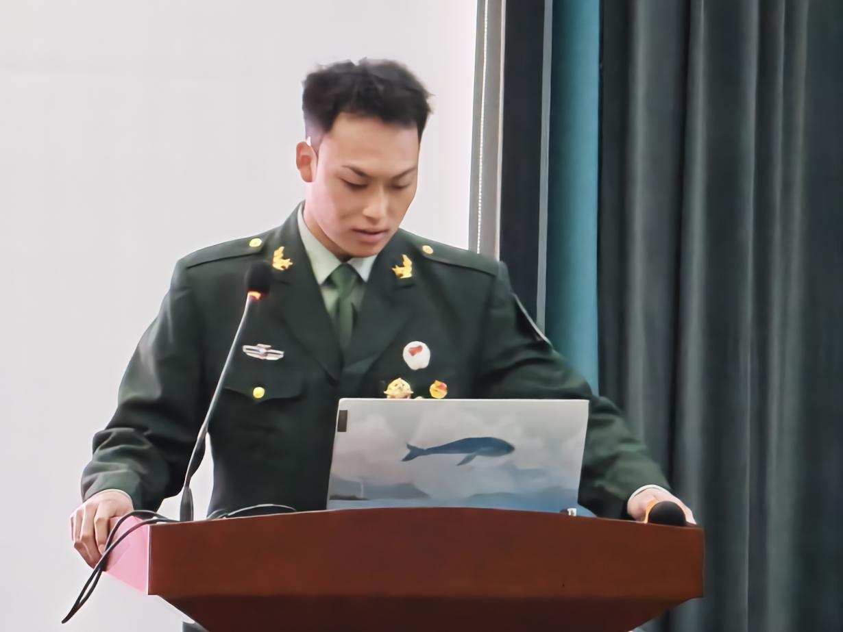 随后,军休干部刘春鹏同志作“传承红色基因、投身国防和军队建设”主题宣讲。他向在场同学们讲述他本人在参加老山战役的战斗细节,“那天的炮火声到现在还在我耳边回响,我眼睁睁看着身边的战友倒下……”从阵地前沿的殊死坚守,到战友间的生死相托,一个个鲜为人知的战斗瞬间被娓娓道来,将同学们的思绪拉回那段烽火连天的岁月。当讲到战友牺牲的场景时,刘春鹏同志声音哽咽、热泪盈眶,台下的同学们也深受触动,不少人悄然拭泪。先辈们用鲜血和生命铸就的钢铁军魂,在这一刻深深烙印在每一位青年学子的心中,点燃了大家投身国防、报效祖国的满腔热血。