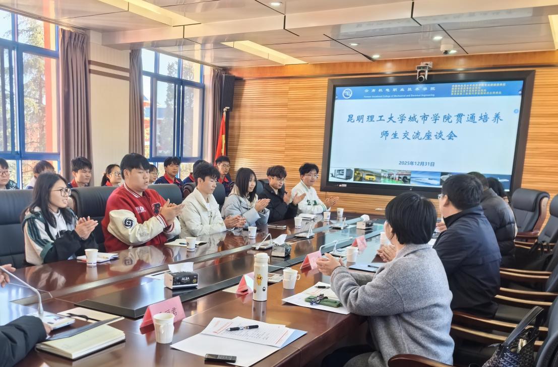 座谈会上,云南机电职业技术学院党委副书记、校长沈韬介绍了学校在高职阶段人才培养的特色与成果,强调了贯通培养中课程体系衔接、教学质量保障等方面所做的探索;昆明理工大学城市学院院长李法社表示,高本贯通是构建现代职业教育体系的重要环节,两校应进一步加强沟通协作,优化贯通机制,共同打造符合产业需求、贯通有序的人才培养通道;曾和平副院长结合学院专业建设与实训教学规划,就实训资源共享、实践课程协同开发等合作可能性与对方进行了深入现场交流;张超副院长针对高本贯通项目中的学生实践衔接、跨校资源整合等问题,与云南机电职业技术学院相关负责人交换了意见,为后续合作落地提供了具体方向。