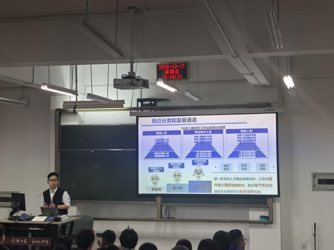 活动伊始,昆明供电局主要负责人采用“身边人讲身边事”的亲切方式,通过分享多位优秀校友及在职员工的成长轨迹与一线工作案例,生动描绘了电网员工的日常工作画面与生活场景,详细解读了昆明供电局及其所属两区六县供电单位不同的业务特色与地域工作特点。负责人特别介绍了单位为丰富员工业余生活、促进工作与生活平衡而定期举办的各类文体活动,如趣味运动会、音乐节等,展现了企业良好的人文关怀与团队氛围。
