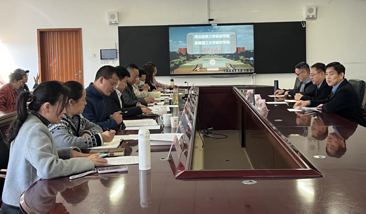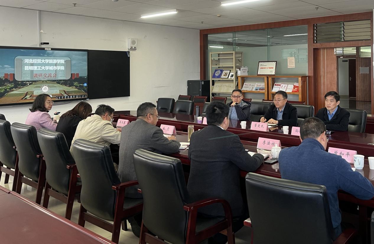 2025年11月14日下午,河北经贸大学旅游学院党委书记董爱民、院长孙振杰等率队访问昆明理工大学城市学院。城市学院党委书记秦本逵、院长李法社、副书记朱雯、副院长曾和平等出席座谈会。