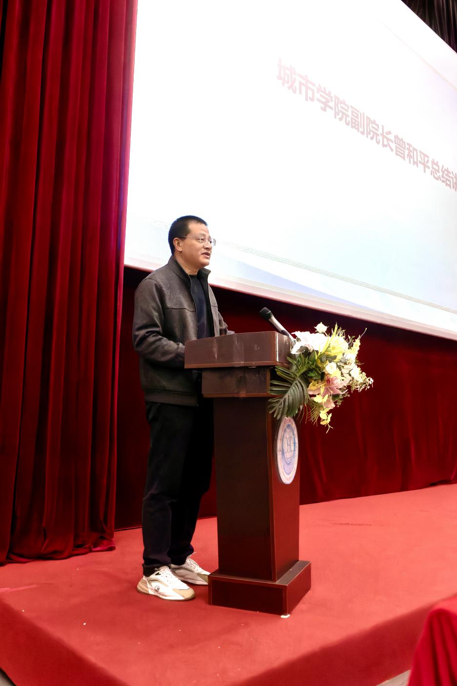 活动尾声,城市学院副院长曾和平作总结讲话。他强调,学风是学院发展之基、学生成长之本,学院将持续以学风提升月为抓手,强化过程管理、优化服务保障、厚植育人氛围。他希望全体同学坚定学习目标、严守学习纪律、提升综合素养;希望自管会成员履职尽责、率先垂范,带动全体同学共筑优良学风,营造良好学习氛围。