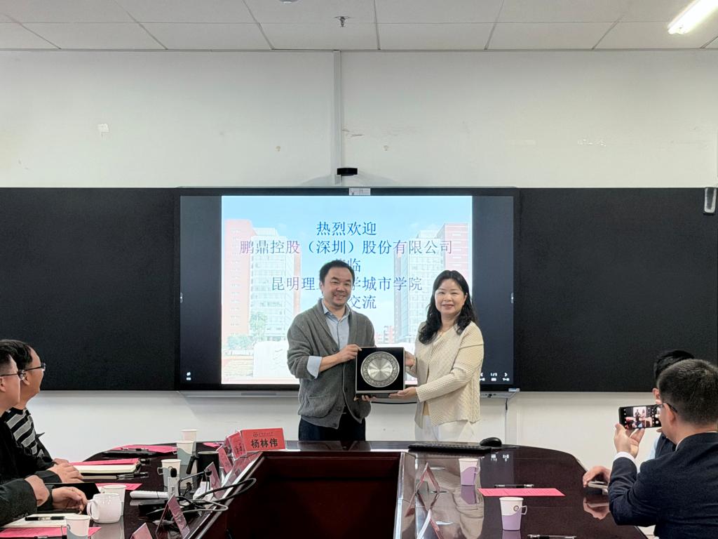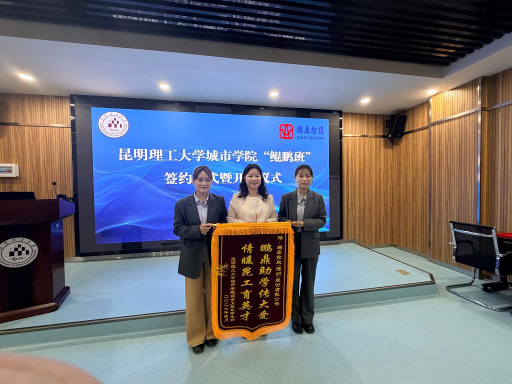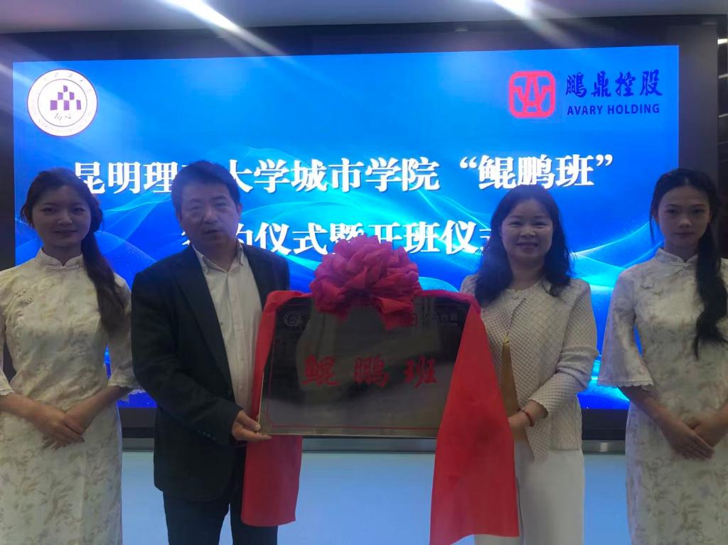 4月13日,昆明理工大学与鹏鼎控股“鲲鹏班”签约暨开班仪式在呈贡校区举行,副校长牛昱宇出席,臻鼎科技集团副总经理兼人力资源总监杨维贞一行、学校就业指导中心负责人、城市学院党政班子成员、师生代表80余人共同参加了签约仪式及开班仪式。