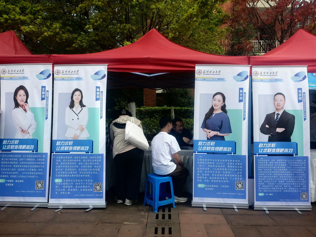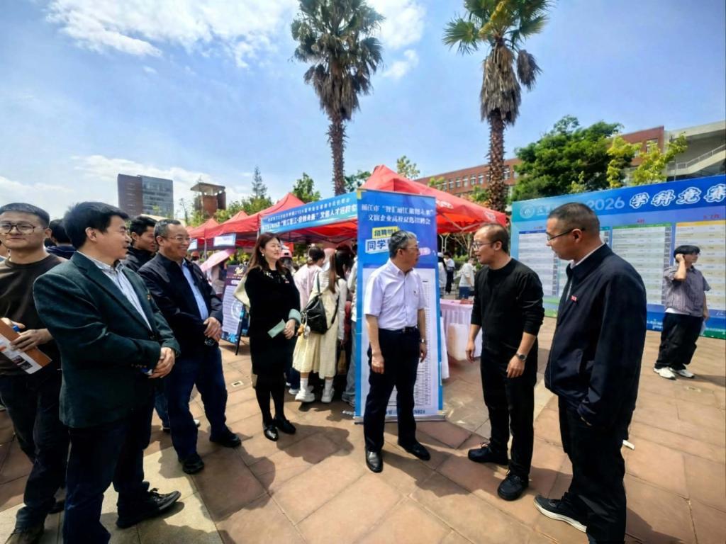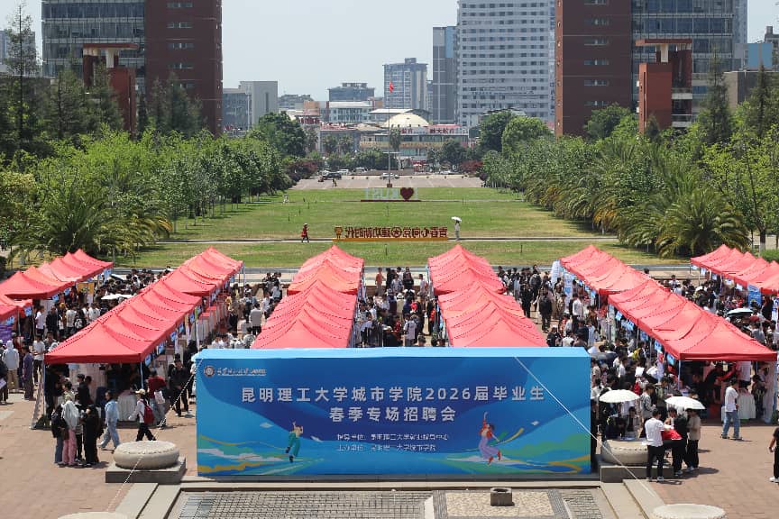 4月16日下午,昆明理工大学城市学院2026届毕业生春季专场招聘会在呈贡校区图书馆前广场举行。本次招聘会同步联动中国黄金集团组团招聘、丽江市“智汇丽江·旅创未来”文旅人才专场招聘,三大招聘板块同场举办、协同发力,精心为毕业生搭建起优质高效的就业对接平台。