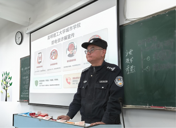 吴家营派出所警官在呈贡校区开展防诈骗专题讲座