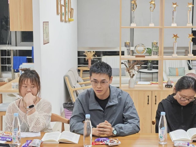 本次读书会由青阅读书会指导老师担任主讲人。活动伊始,主讲人结合史铁生的人生经历与创作背景,为师生梳理了《我与地坛》中作者从绝望迷茫到与命运和解、完成精神救赎的成长脉络。他着重解读了书中“苦难与生命”“母爱与救赎”“自然与哲思”等核心主题,让在场师生对作品的深层内涵有了初步且全面的认知。