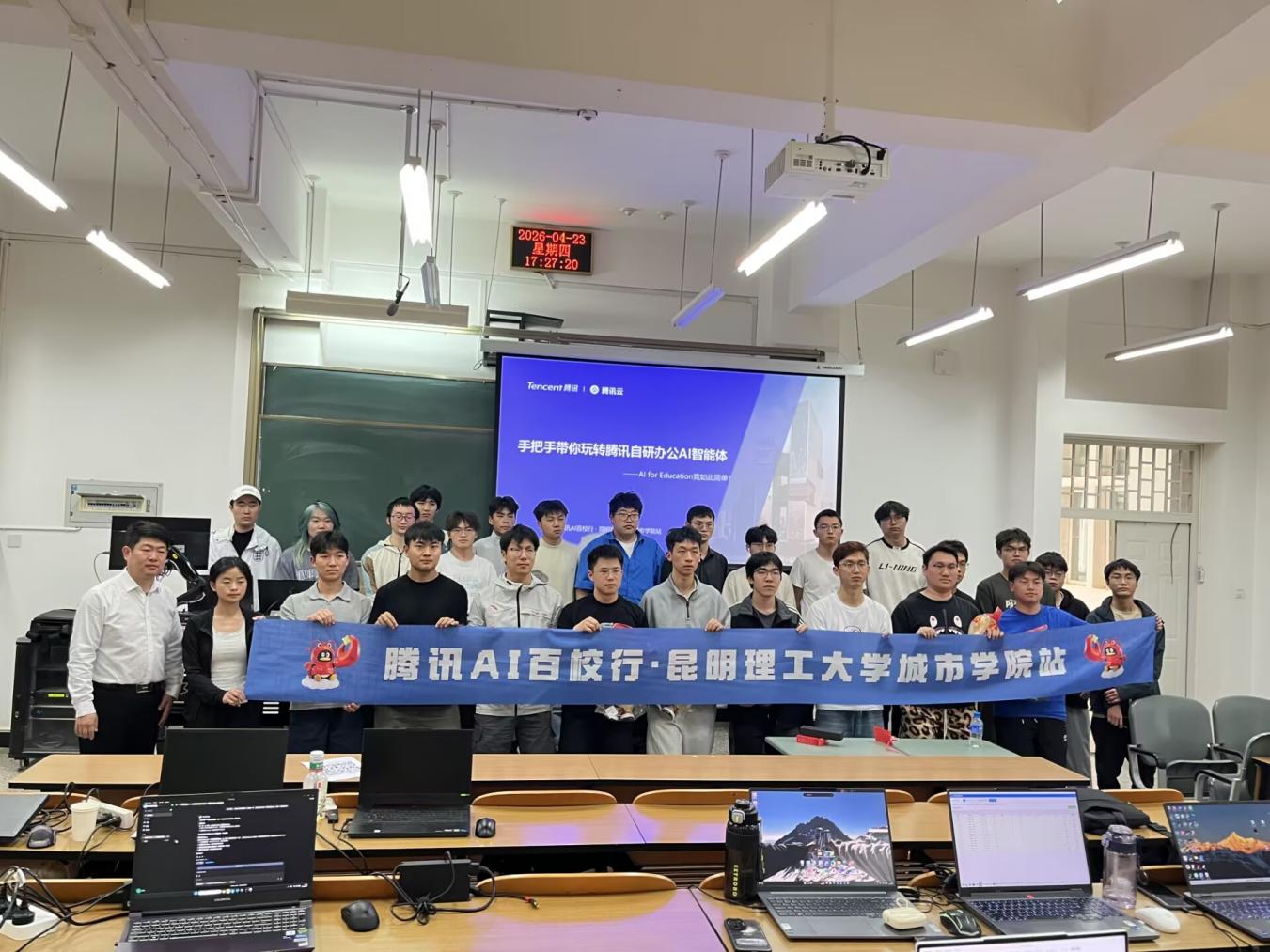 为帮助大学生把握人工智能时代技术变革带来的新机遇,4月23日,由昆明理工大学城市学院信息工程系、腾讯云、景格科技主办,助航起飞生涯工作室、灿然生涯工作室、“匠心筑梦”师生共成长工作室联合承办的“智领职教·创见未来”AI智能体体验营在呈贡校区西北教学楼B301顺利举行。本次活动历时四个小时,紧扣新时代职业教育数字化转型发展要求,聚焦人工智能前沿技术应用,设置专业技术宣讲、师生现场实操、创意产品路演、优秀作品表彰四大环节,全面展示师生深耕科创实践、赋能智慧职教建设的成果。城市学院师生代表与腾讯生态资深技术专家齐聚现场,参与本次科创实践交流活动。